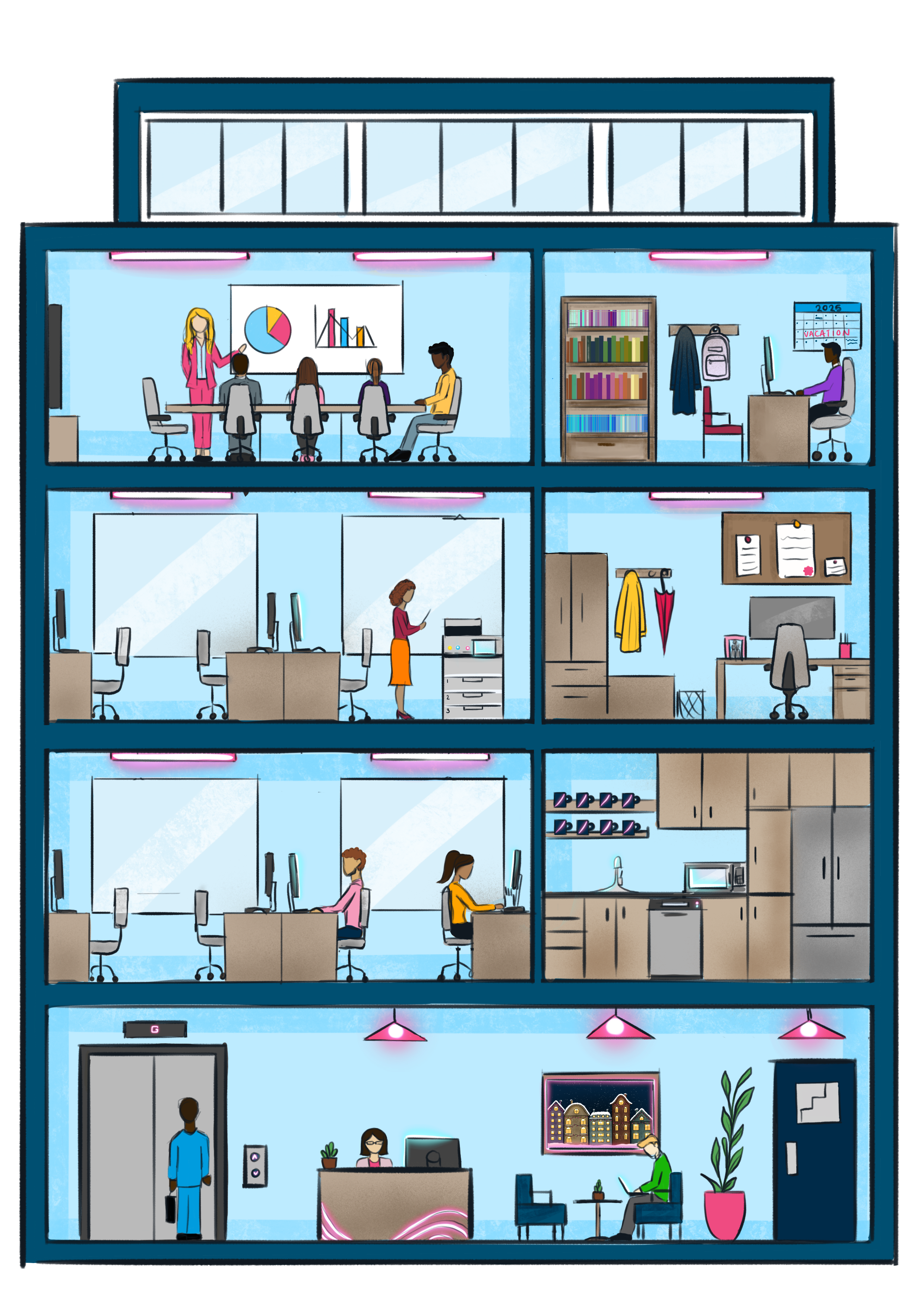 I had an amazing time working on these illustrations for our ad campaign and featuring them in our annual State of the Industry 2025 publication. The concept for these illustrations was to create a series of cross-section illustrations demonstrating how electricity is being used by people in their everyday life, whether that’s at home, work or play.